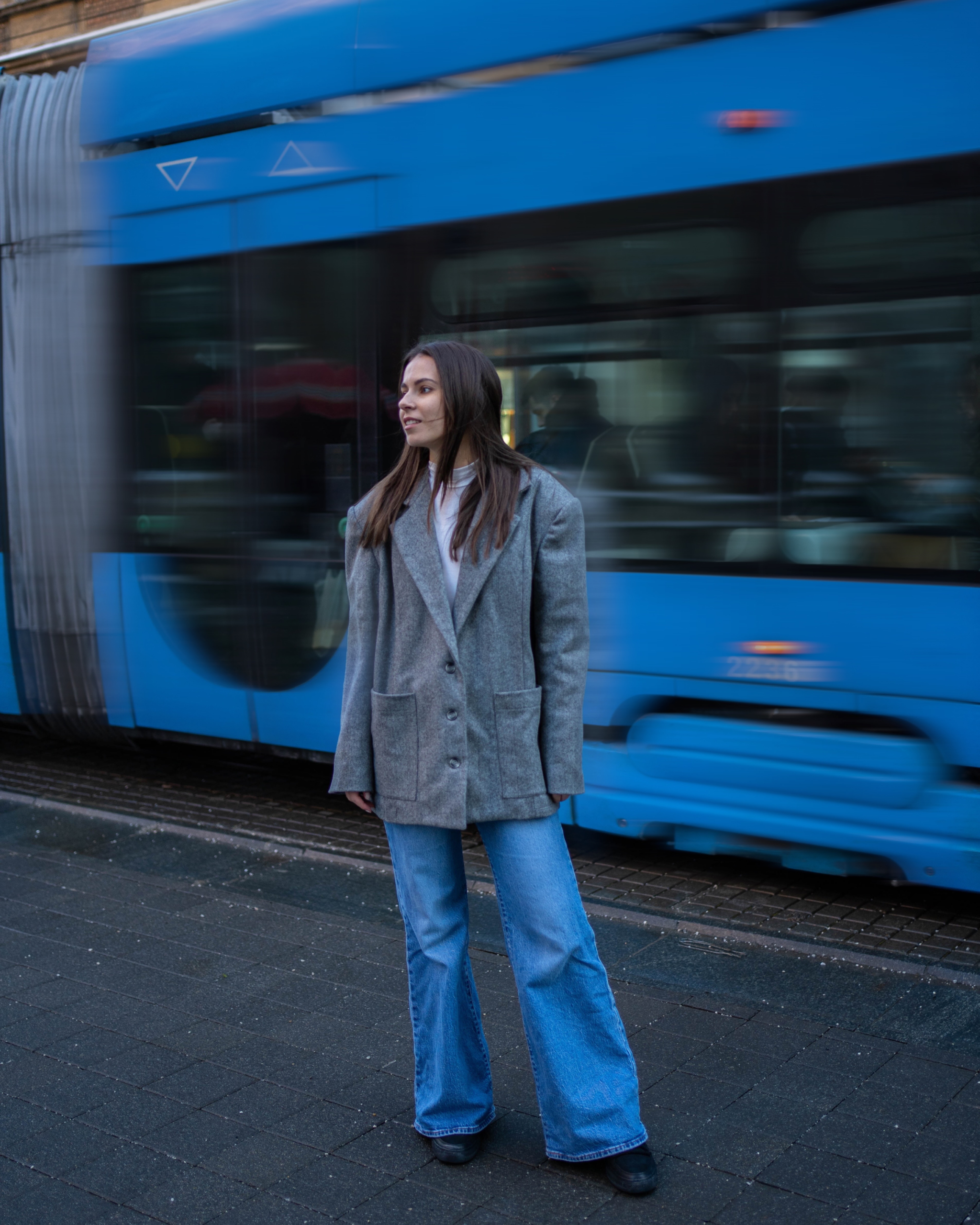 Talijanska vuna i kašmir pružaju toplinu, mekoću i dobru prozračnost. Tkanina je ugodna za nošenje, lijepo pada i zadržava strukturu, uz mekši osjećaj na koži.