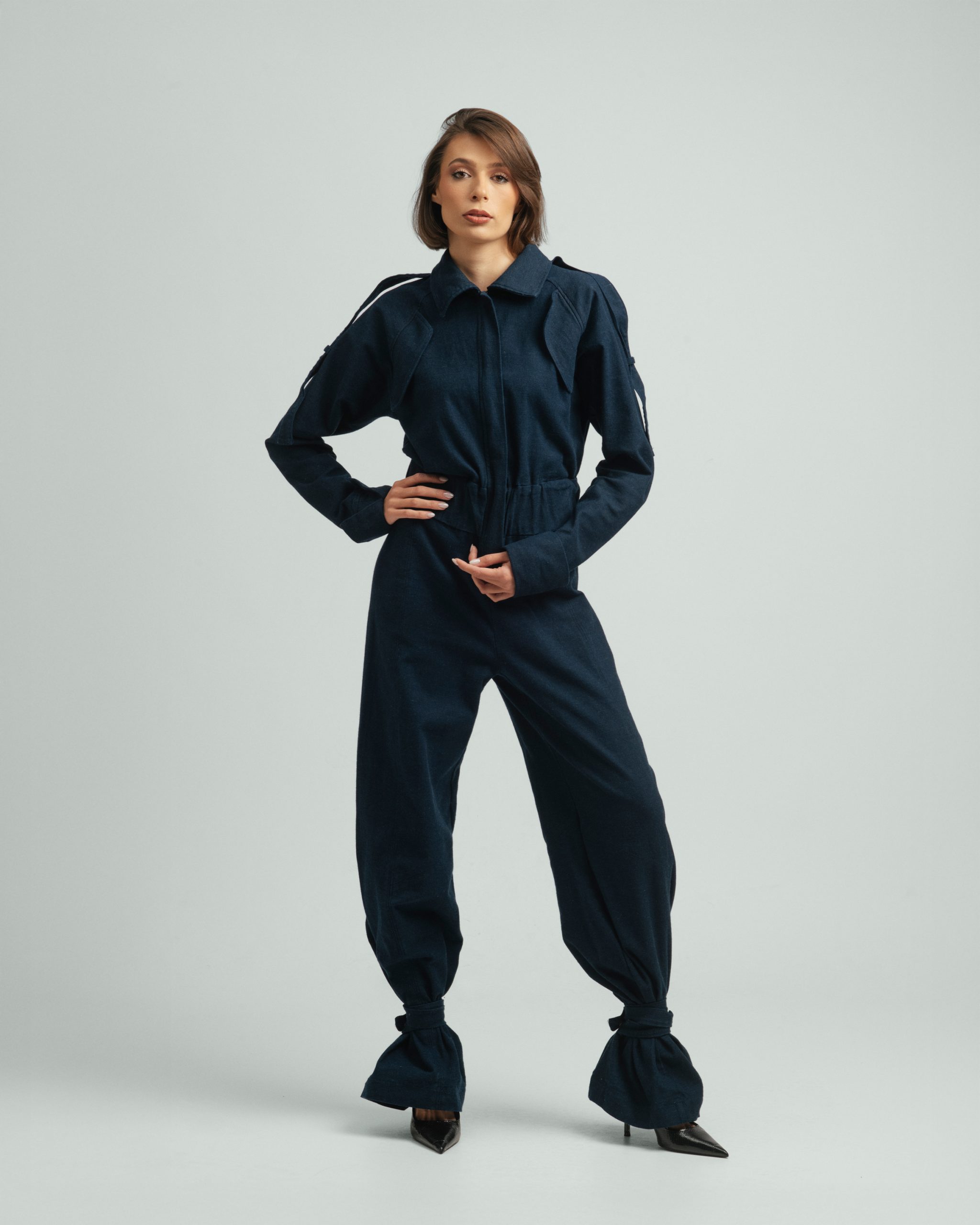 Midnight One kombinezon definiran je jasnim linijama i suptilnim volumenom koji oblikuju skladan izgled. Struk je naglašen, a detalji na rukavima dodaju dozu pokreta i individualnosti. Jedan komad koji nosi snagu jednostavnosti, istovremeno postojan i nenametljivo ženstven.